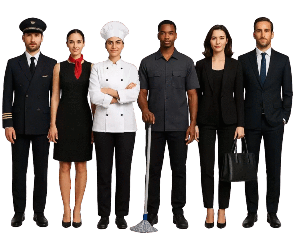 Feitas por pessoas que amam o que fazem, com acabamento em alfaiataria e atenção extrema aos detalhes. Entendemos que o uniforme é parte da experiência da sua marca – e por isso, ele precisa comunicar confiança, elegância e profissionalismo.